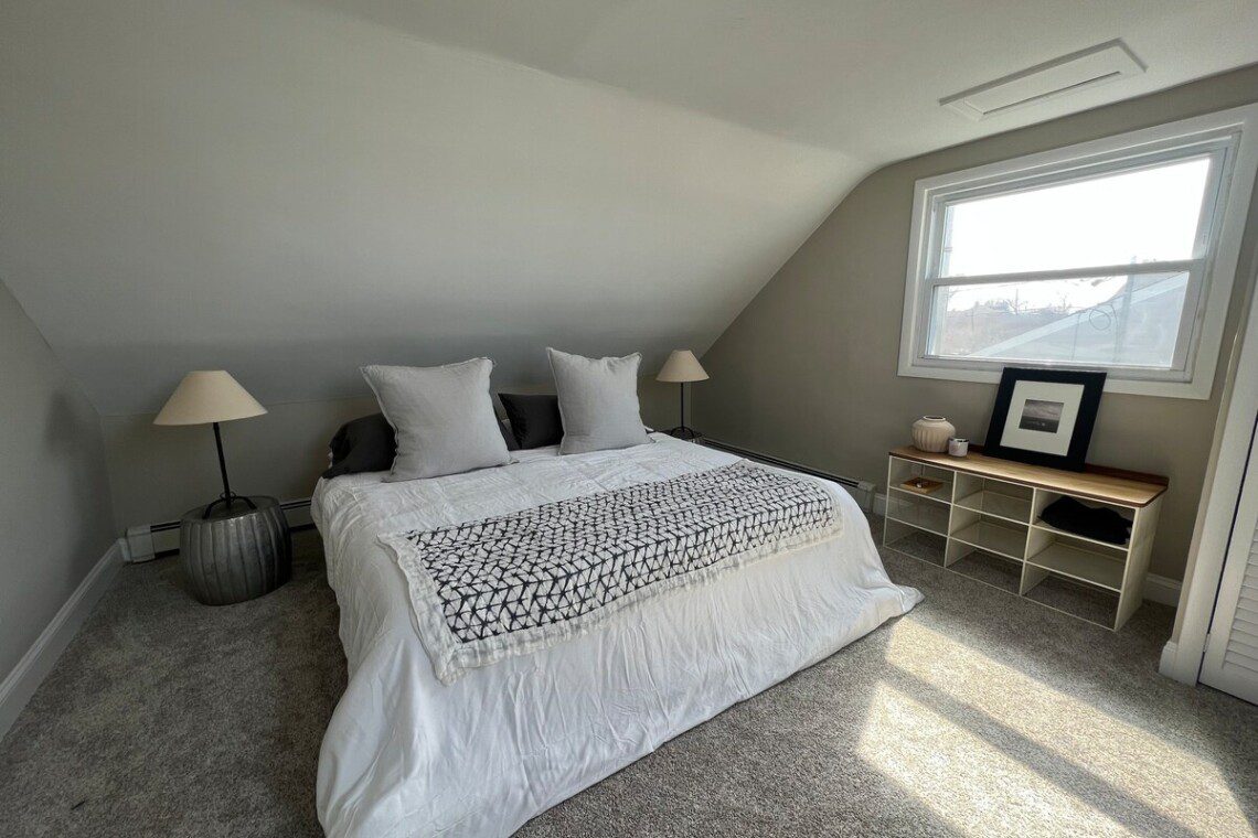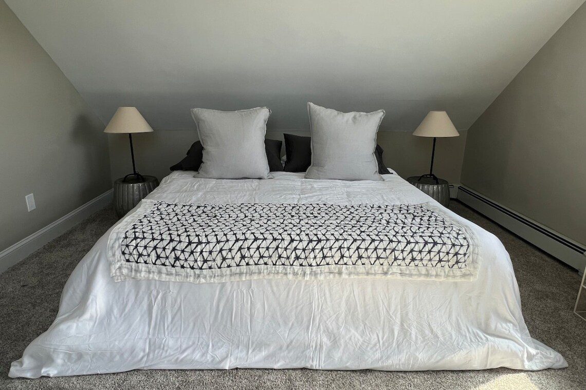 2 spacious bedrooms on the upper level, with one featuring a king-size bed and the other featuring 2 XL twin beds that can be joined together to make a second king mattress. The lower level features: a 3rd bedroom with a twin daybed, a bathroom with a tub and tiled shower, and and new washer and dryer. On the lower level, you will also enjoy the open feel of the dining room/living room combo with double-wide, glass sliding doors to the deck offering unobstructed views from the beautiful dining room table. The kitchen features new appliances, a large window above the sink with more incredible water views, and numerous coffee makers for your choice of coffee, espresso, and French press.